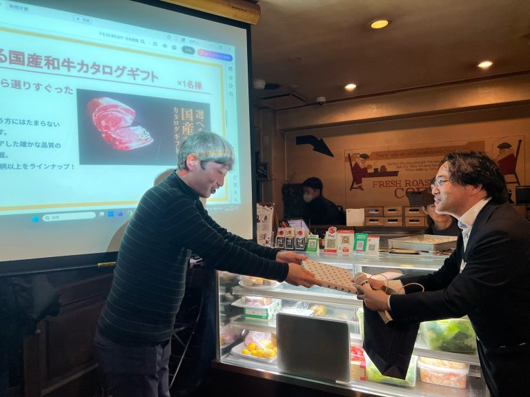 ▲国産和牛のカタログギフトに見事当選(大阪オフィス)