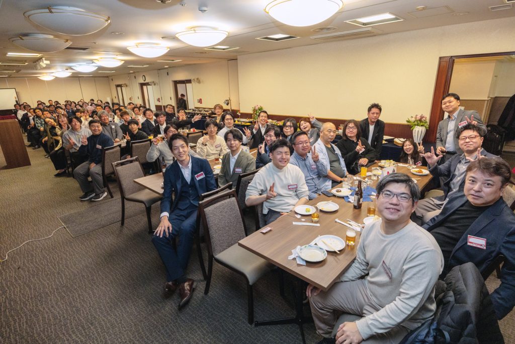 社員数の増加に伴い2会場での開催となった2026年の新年会。佐藤社長が語った「足し算のビジネスと掛け算のビジネスを組み合わせて新しいステージへ進もう」というメッセージを胸に刻み、仲間たちとのつながりを深めた一日となりました。